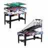 Игровой стол-трансформер DFC BERYL 13-in-1, размером 48" (дюймов), представляет собой домашний развлекательный центр, который превращается в 13 различных игр. Вентилятор, работающий от сети 220В, обеспечивает плавное скольжение шайбы аэрохоккея по игровому полю. Игровой стол предлагает следующие развлечения: Аэрохоккей (2 биты и 2 шайбы, механический счетчик) Стрельба по мишеням (5 мишеней, 1 бластер и 5 дротиков) Plink shot (4 мячика) Гольф (1 клюшка, 2 флажка, 2 мяча) Шахматы Шашки Нарды (шашки и 5 игральных костей) Баскетбол (кольцо с сеткой, мяч с насосом, сетка для возврата мяча) Bean bag (метание мешков) (3 мешка для игры и 1 сетчатый мешок) Стрельба из лука (лук и колчан, 3 стрелы) Дартс (6 дротиков с присосками) Боулинг (1 шар, набор кеглей) Настольный пальчиковый футбол (2 треугольника, 2 пары ворот)