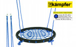 Качели-гнездо Kampfer выполнены из металлической рамы диаметром 100 сантиметров, с дополнительной защитной оплеткой ее бортиков, обтянутых прочным синтетическим канатом выдерживающим нагрузку 100 кг. Плетеное синтетическое сидение качелей удобное и практичное, не собирает грязь и воду, при сильных загрязнениях его можно протереть.