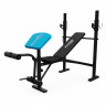 Скамья силовая со стойками под штангу DFC D709 для домашних тренировок. Максимальная нагрузка до 200 кг. Размер спинки скамьи 75 х 30 х 5 см, сиденья – 36 х 30 х 5 см, расстояние от сиденья до пола 47 см. Расстояние между стойками 107 см, высота стоек 131 см. В комплекте парта для бицепса, съёмные валики и ручка для тяги на цепи. Нагрузка на стойки до 120 кг, на парту – до 80 кг, на рычаг для валиков и ручки для тяги – до 80 кг. Скамья регулируется по углу наклона на 4 уровня. Держатель для штанги регулируется по высоте на 3 уровня. Профиль основной трубы 50 х 50 х 1,2 мм