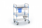Быстрая и удобная перевозка медицинских инструментов и принадлежностей чрезвычайно важна для отделений хирургии, интенсивной терапии, а также в больничных палатах и кабинетах лечебно-профилактических учреждений. Данная модель разработана для того чтобы максимально упростить работу персонала и улучшить качество обслуживания пациентов. Комплектующие из нержавеющей стали обеспечивают изделию необычайную прочность и стойкость к внешним воздействиям, презентабельный внешний вид и простоту в дезинфекции.